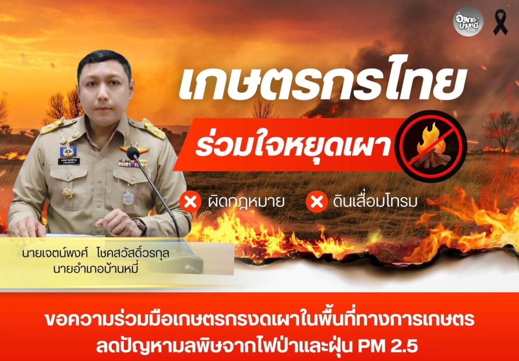 ขอความร่วมมือเกษตกร งดเผาในพื้นที่ทางเกษตรเพื่อลดปัญหามลพิษจากไฟป่าและฝุ่น Pm 2.5 ข่าวประชาสัมพันธ์ 23 เมษายน 256923 เมษายน 2026 peach1980 องค์การบริหารส่วนตำบลหนองเต่า ขอความร่วมมือเกษตกร งดเผาในพื้นที่ทางเกษตรเพื่อลดปัญหามลพิษจากไฟป่าและฝุ่น Pm 2.5 FacebookFacebookXTwitterLINELine